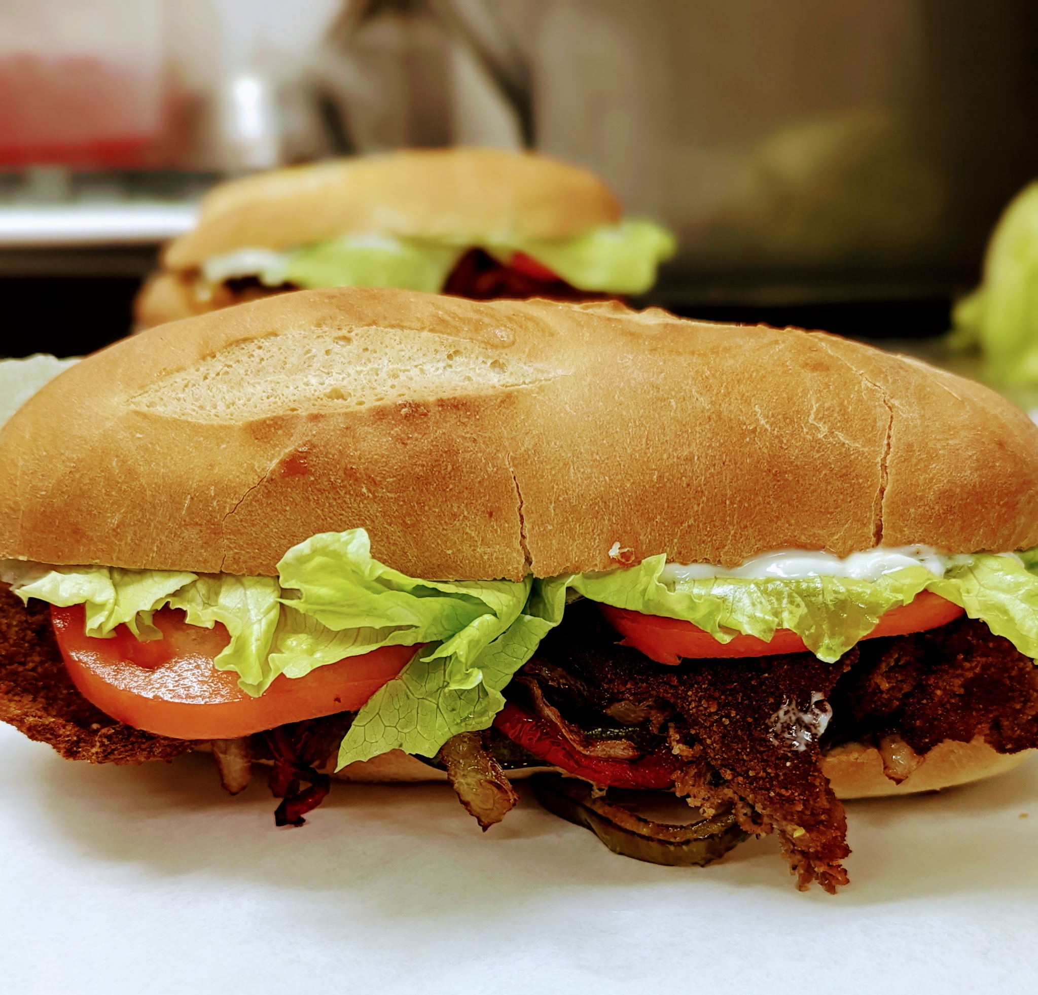 - Served on toasted homemade white rolls with mayo, lettuce, tomato, and cheese.